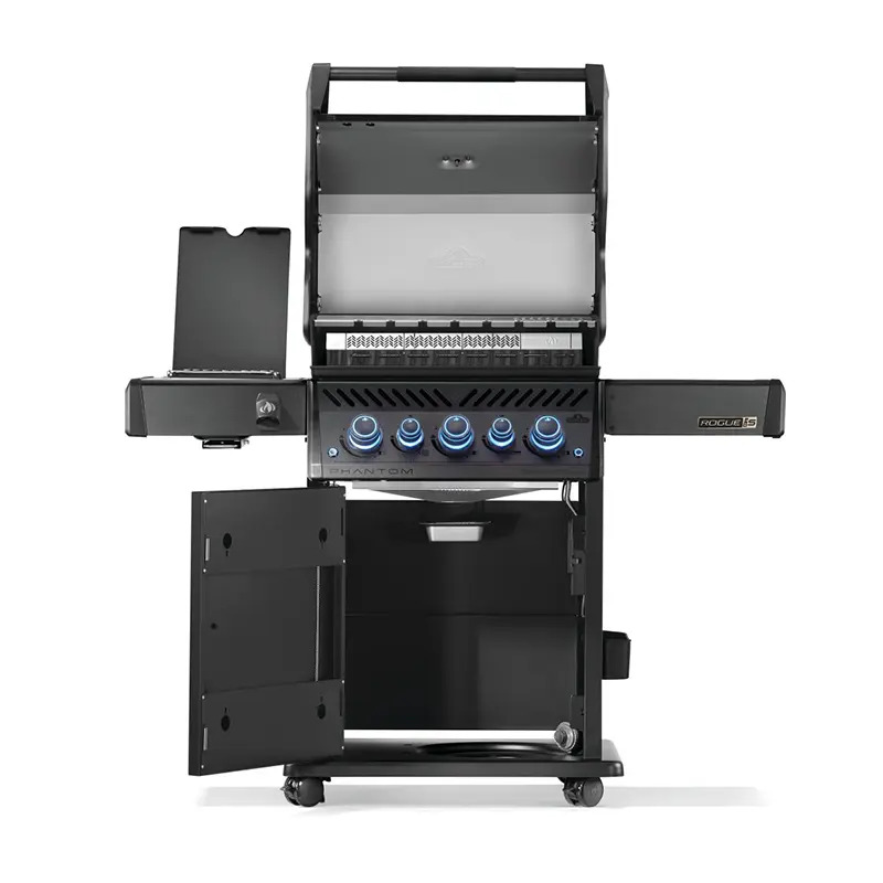 גריל גז בעיצוב Phantom שחור מט, המשלב נוכחות יוקרתית עם ביצועי צלייה מתקדמים. גוף הגריל מצופה גימור כהה עמיד בחום, עם חזית נקייה וקווים מדויקים המשתלבים באופן טבעי במטבחי חוץ מודרניים.