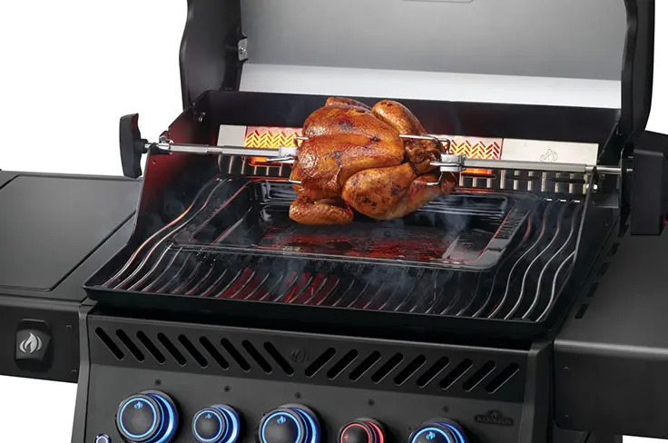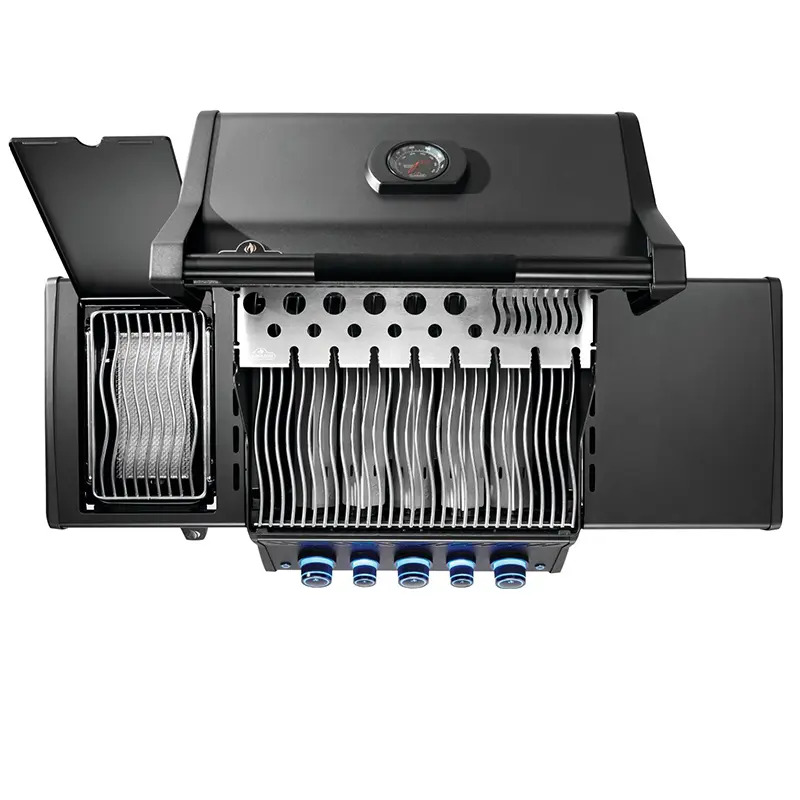 מערכת מבערים חזקה מספקת חום אחיד ותגובה מהירה, ומתאימה לצלייה יומיומית לצד עבודה בעוצמות גבוהות. כירת צד אינפרא אדום מאפשרת צריבה מדויקת בטמפרטורה גבוהה, בעוד מבער אחורי מרחיב את אפשרויות הבישול לצלייה עקיפה ורוטיסרי.