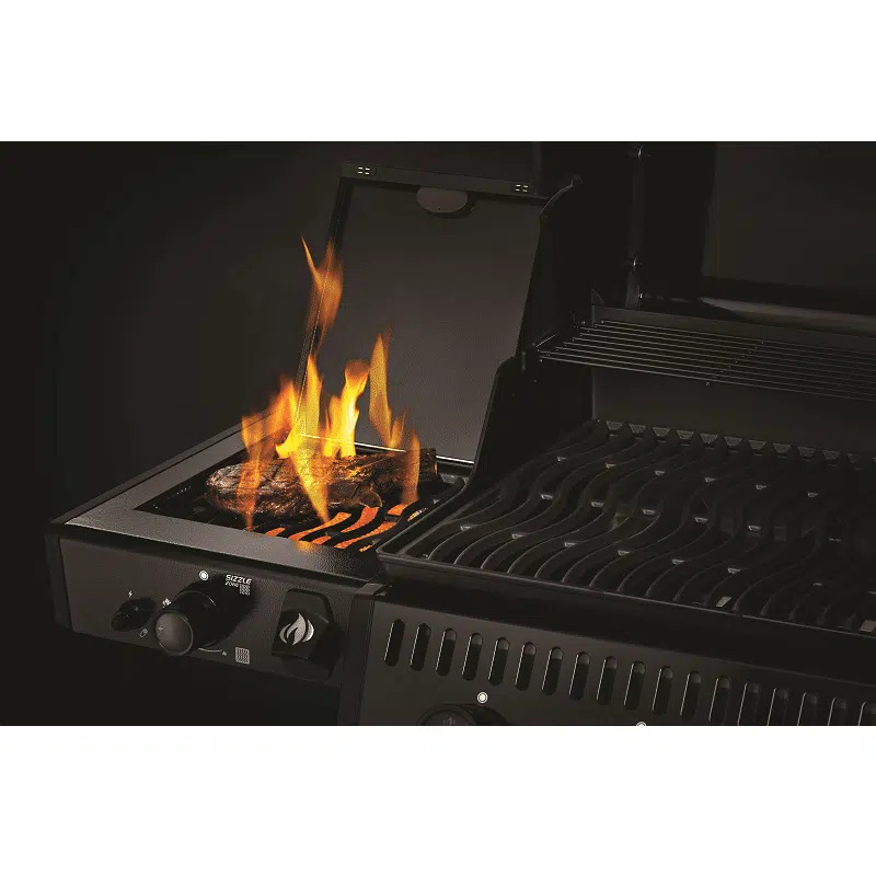 גריל גז מסדרת Legend של Napoleon, בתצורת עגלה ובשילוב כירת צד אינפרא אדום, מיועד למשתמשים שמחפשים פתרון מאוזן בין עוצמת חום, שימושיות יומיומית ואמינות מוכחת. ארבעת המבערים הראשיים מספקים פיזור חום אחיד ושליטה נוחה לאורך כל משטח הצלייה.
