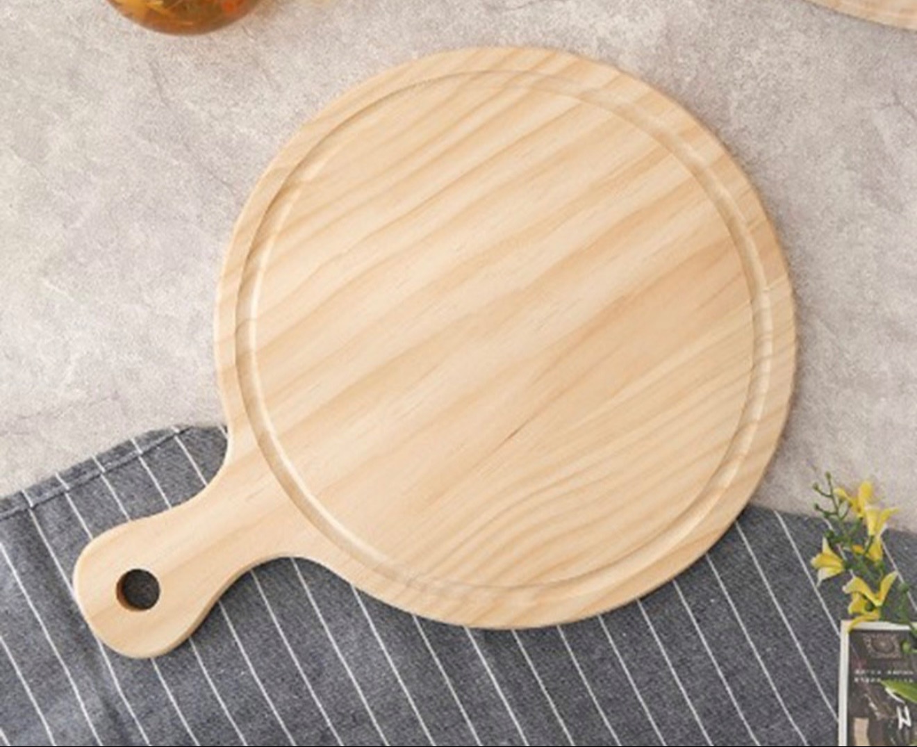 מגש עץ עגול איכותי עם ידית להגשת והחיתוך פיצה 230X350 pizzaly