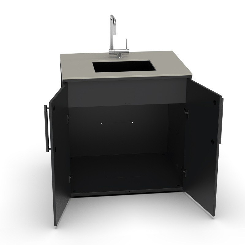 מודול CT 90 Sink מספק תחנת מים רחבה למטבח החוץ המודולרי של Brabura. המודול כולל כיור וברז מנירוסטה שחורה, דלתות Soft-Close איכותיות ומשטח Neolith יוקרתי. השילוב בין עמידות, היגיינה ועיצוב מודרני הופכים אותו לפתרון אידיאלי למטבחי חוץ גדולים ומרווחים.