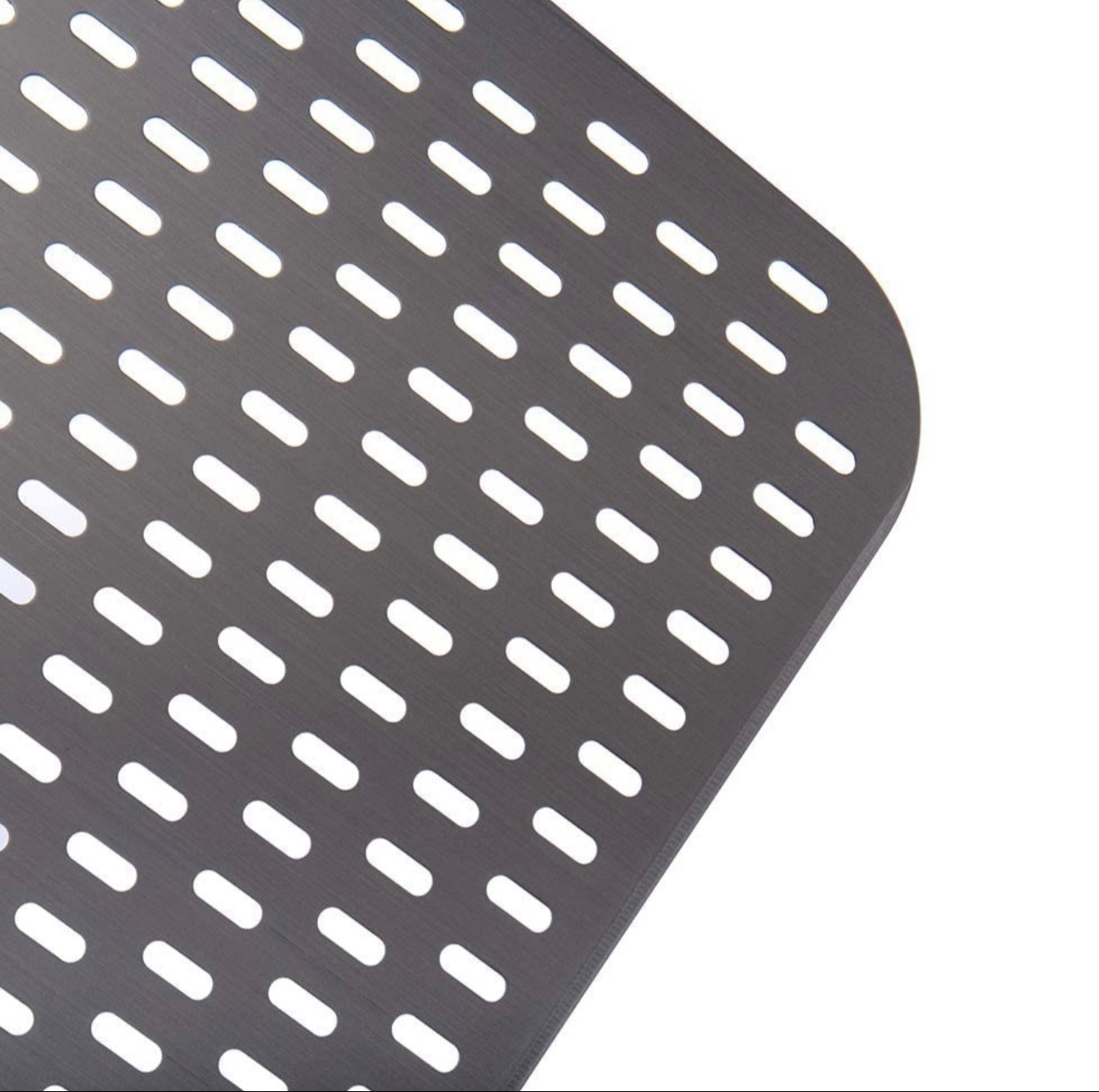 מרדה מקצועית לפיצה מאלומיניום Hard-Anodized עם ראש מחורר במידות 35.5X40 ס"מ וידית שחורה באורך 91 ס"מ. מחוררת לאוורור ולניקוז קמח, קלה לשימוש ומתאימה לטאבון או תנור מקצועי.