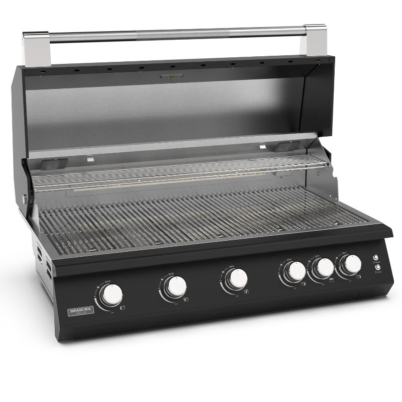 ה‑Brabura Fusion 500 RM הוא גריל Built‑In מרשים שמציע חוויית בישול רחבה עם 5 מבערים מנירוסטה, מבער אחורי אינפרא‑אדום לעוצמה צלייה נוספת, שטח צלייה גדול של כ‑95×46 ס״מ, גוף חיצוני מצופה פלדה בצבע שחור Qualicoat לצד אלמנטים מנירוסטה איכותית. כולל הצתה Piezo אוטומטית, כפתורים מוארים ב‑LED, ופיצ׳רים של גשם וציפוי שמגנים. אם אתה מחבר אותו למטבח חוץ מודולרי או עומד לבד — Fusion 500 RM נותן נוכחות חזקה, עוצמה אמיתית ועיצוב פרימיום.